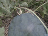 黒スイカの収穫時期は 写真を撮りました 黒スイカ直径センチおしり Yahoo 知恵袋